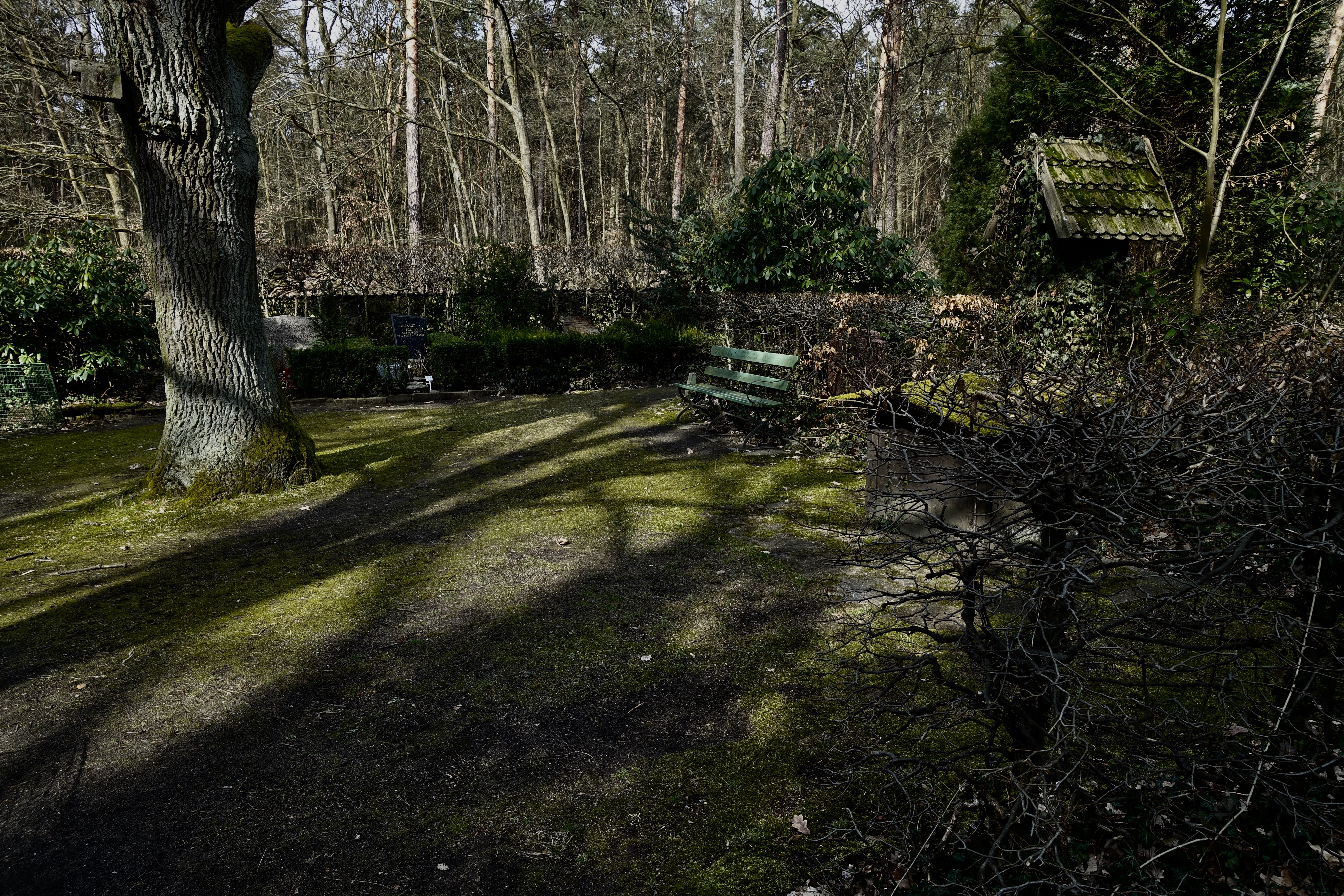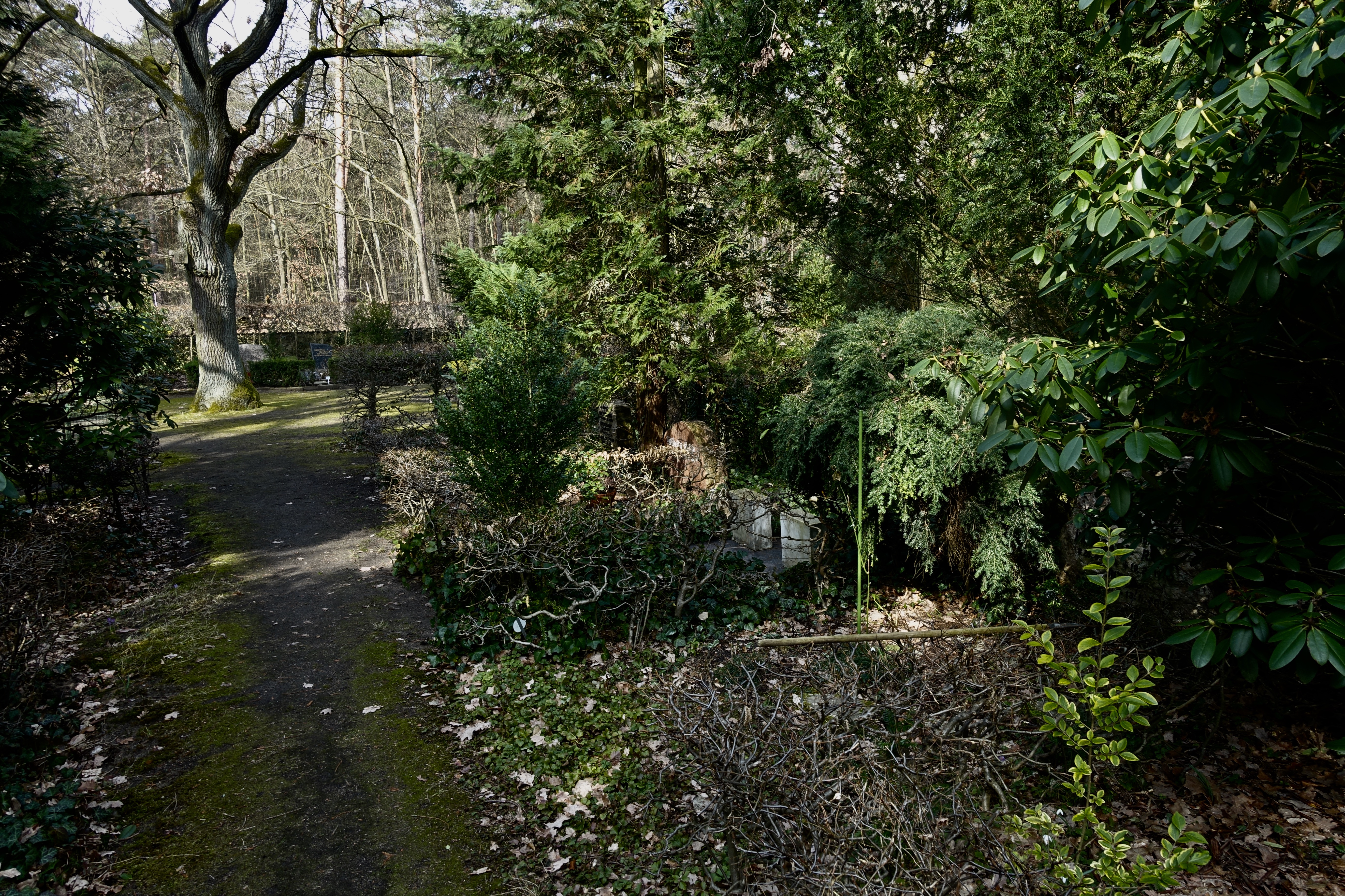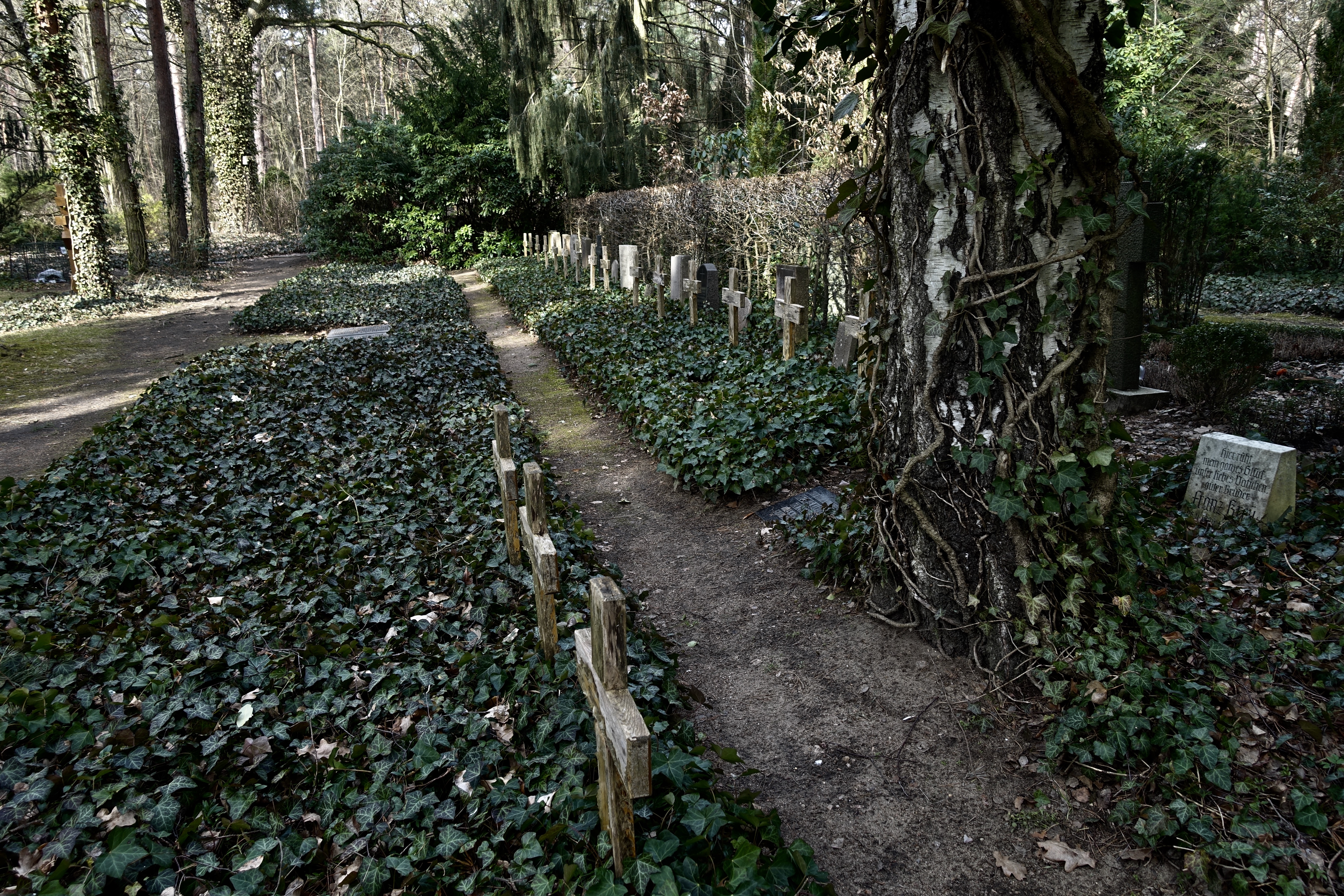 "Eines Mittags fuhr Amelie nach Wilmersdorf. Auf Höhe des Restaurants an der Landzunge hinter dem Stößensee stieg sie aus dem Bus, folgte zu Fuß der Havelchaussee, die an dieser Stelle einen Knick machte und vom Ufer wegführte. Nach ein paar hundert Metern bog sie in einen Waldweg. Amelie war aufgewühlt. Hin und wieder blieb sie stehen, horchte in die Tiefe des Waldes, aus der grelle Vogelschreie kamen. Wenn sie den Kopf hob, war zwischen den kahlen Stämmen der Kiefern nur grauer Herbsthimmel. Sie war erleichtert, als ein kleines vermodertes Holzschild an einer Abzweigung ihr den Weg wies.Das Gräberfeld lag, eingefriedet von einer meterhohen Mauer, auf einer kleinen Anhöhe. Durch eine schwere metallbeschlagene Holztür gelangte man unter dem bogenförmig gemauerten Tor ins Innere des Totenackers.