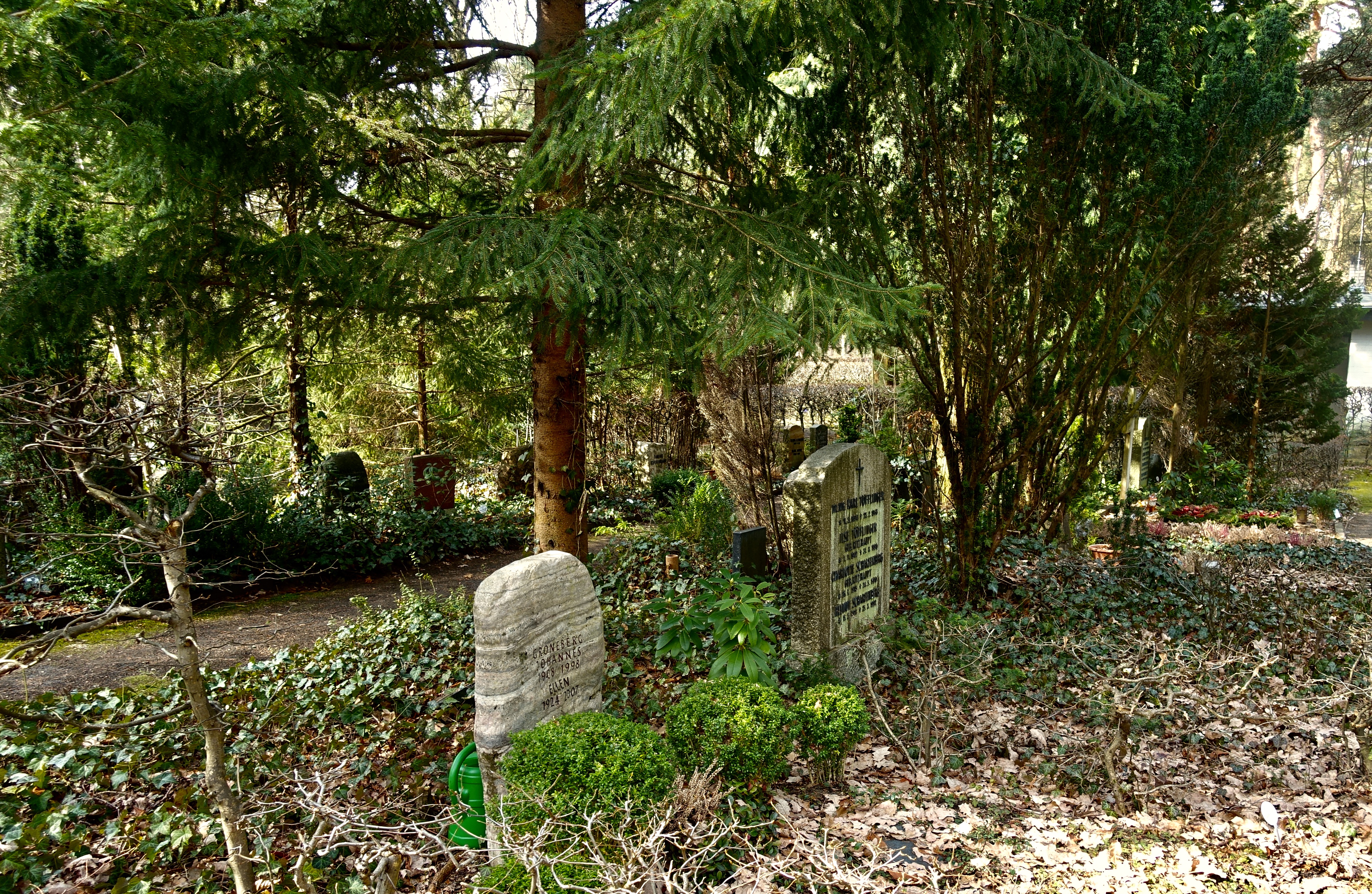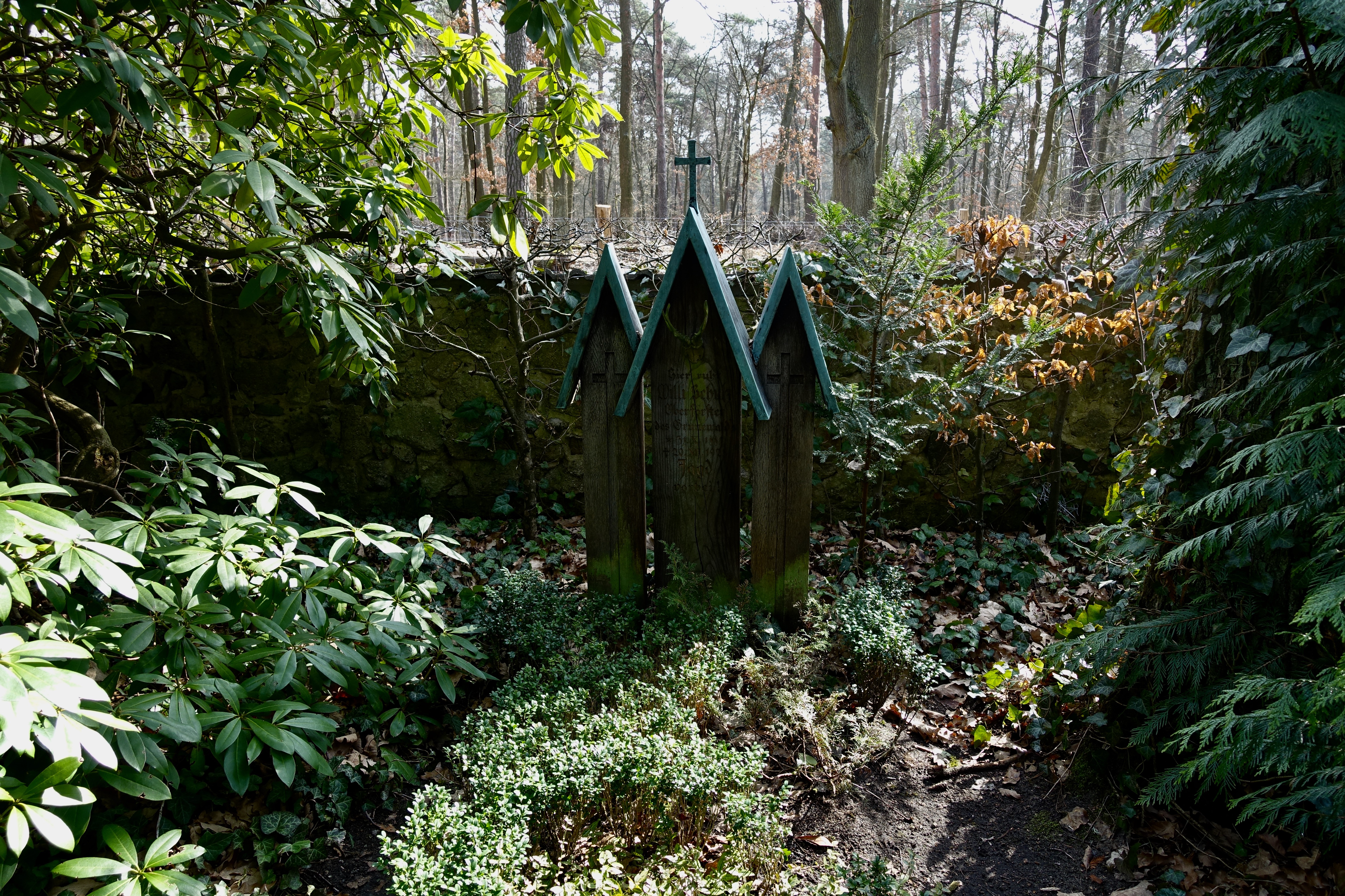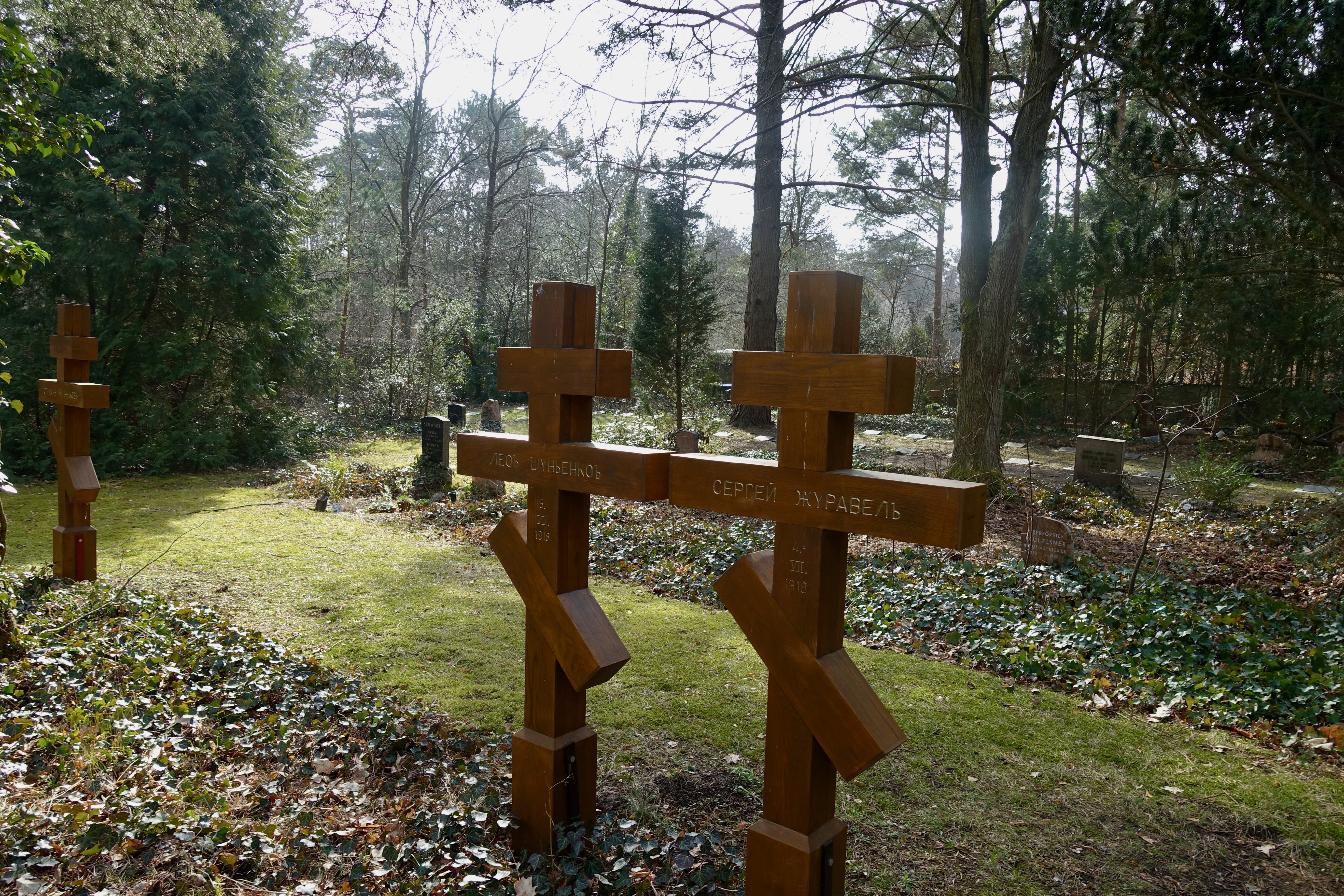 "Eines Mittags fuhr Amelie nach Wilmersdorf. Auf Höhe des Restaurants an der Landzunge hinter dem Stößensee stieg sie aus dem Bus, folgte zu Fuß der Havelchaussee, die an dieser Stelle einen Knick machte und vom Ufer wegführte. Nach ein paar hundert Metern bog sie in einen Waldweg. Amelie war aufgewühlt. Hin und wieder blieb sie stehen, horchte in die Tiefe des Waldes, aus der grelle Vogelschreie kamen. Wenn sie den Kopf hob, war zwischen den kahlen Stämmen der Kiefern nur grauer Herbsthimmel. Sie war erleichtert, als ein kleines vermodertes Holzschild an einer Abzweigung ihr den Weg wies.Das Gräberfeld lag, eingefriedet von einer meterhohen Mauer, auf einer kleinen Anhöhe. Durch eine schwere metallbeschlagene Holztür gelangte man unter dem bogenförmig gemauerten Tor ins Innere des Totenackers.